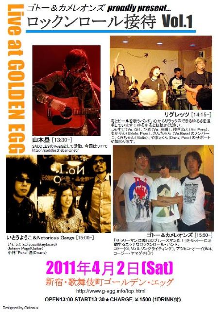 いよの親知らズいとうようこの日々をつづります。PAGE | 146 145 144 143 142 141 140 139 138 137 136 | ADMIN | WRITE 2011.03.28 Mon 13:38:07 4月2日(土)新宿歌舞伎町Golden EggTrackbacksTRACKBACK URL : CommentsComment Form |
