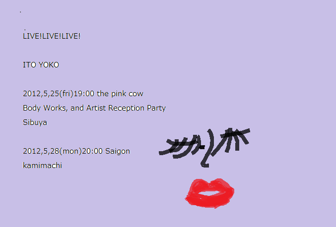いよの親知らズいとうようこの日々をつづります。PAGE | 11 12 13 14 15 16 17 18 19 20 21 | ADMIN | WRITE 2012.05.29 Tue 12:54:51 サプライズ!!!!もはや恒例となってきたサイゴンでのLIVE。 月曜なのに、お客さんいっぱい。 やっぱ、おいしいからねー。 そして私は、いつもどおり、歌う。終わる。 照明落ちて。ん?んん? なんと・・・・・・・・・・・ サプライズでバースディケーキを用意してくれてました。 わーい!! ※ケーキ持ってるのはスタッフではなく、知る人ぞ知る韓流スターだよん(笑 んで、こちらがスタッフね。 fecebookなら思わず「いいね」ってしたくなる 男の子。 お天気はそんなによくなかったけど 心がぽっかぽかになった1日でした。 サイゴンの皆さんいつもありがとう。 サプライズ企画してくれたマイフレンドもどうもありがとう。 PR 2012.05.23 Wed 10:05:55 きょうのGoogleステキなのよー。 ロバート・モーグ生誕78周年だって。 この方がいなければ、今の音楽はないと言っても過言じゃございません。 今日いろんなことを、ググってみるときは(笑 このトップページも楽しんで!!! 2012.05.22 Tue 12:37:15 with Nagisa Kobayashi今週の金曜日は「The Pink Caw」 でliveですー。 とっても久しぶりにNagisa Kobayashi氏と出演します。 JAM&JAZZな感じで。 ※出演時間:20:10- 20:35 From 5pm and after 11pm....No entry charge for all these good art! Come early for dinner and the best seats! Great Pink Cow food will be available to order at the bar until 10:30pm, drinks til whenever! 2012.05.19 Sat 23:11:59 話題のヒカリエ2012.05.14 Mon 11:05:14 キッシュにtry!2012.05.10 Thu 11:29:21 歩けども。歩けども。2012.05.04 Fri 22:06:43 すんばらしい!!!!!2012.05.03 Thu 22:43:48 潤いだいじ。アニョハセヨ。ずっと気になってた兄夫(ヒョンブ)食堂へ。 壁一面、有名人の色紙だらけ。 た、たしかに「ウマい」!! そして、友達(王子&だみ声ちゃん)から プレゼントでスキンオイルを貰った。 わたしが、冷え性で乾燥肌なのを案じて(笑 選んでくれた贈り物。 なかなか普段使いで気軽に買えないから、これはかなり嬉しい!! それにしても、やっぱり韓国女子の肌ってきれいね〜。 羨ましっ。 |